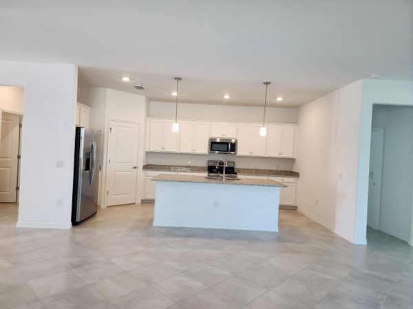 Be the first to live in this new construction home in the gated community of Portico with a beautiful lake view, 4 bedroom 3 bathrooms split floor plan allowing privacy for family and guests. The large living room is open to the dining room and kitchen. The primary bedroom has a large walk-in closet, a view of the lake and an en-suite bathroom with two sinks and large shower. The amenities include clubhouse, exercise area, tennis, pickleball, basketball court, play area and resort style pool. Close to dining, shopping, and entertainment.